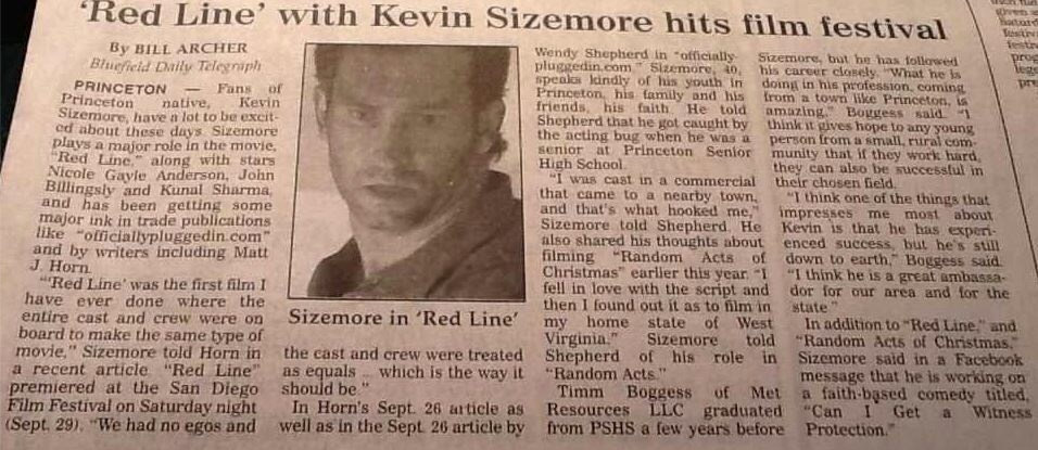 Article about actor Kevin Sizemore mentioning Officially Plugged In...